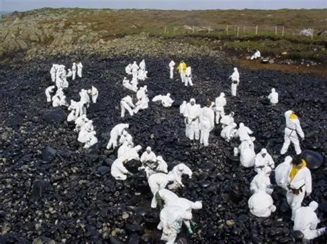 - Na terra, usáronse palas, rastrillos, cubos e maquinaria básica para retirar o petróleo solidificado nas plaias e rochas.